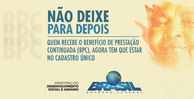 A Secretaria Municipal de Assistência social informa que todos os idosos e pessoas com deficiência que recebem o Benefício de Prestação Continuada (BPC), devem se cadastrar até o dia 15 de dezembro.