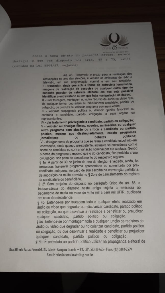CONFIRA O PARECER NA ÍNTEGRA