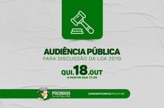A Câmara Municipal de Pocinhos irá realizar na próxima quinta-feira(18) mais uma Audiência Pública. Desta vez, a pauta da Audiência será a discussão e aprovação da LOA 2019, ...