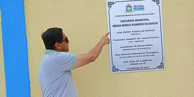 O presidente da Câmara Municipal de São João do Cariri, Duda Menezes, foi até o município de São João do Cariri para conhecer conhecer um equipamento do Complexo Esportivo da cidade, que recebeu o nome do pocinhense Sérgio Murilo Guimarães (in memoriam). O complexo recebeu ainda uma quadra de areia e banheiros.