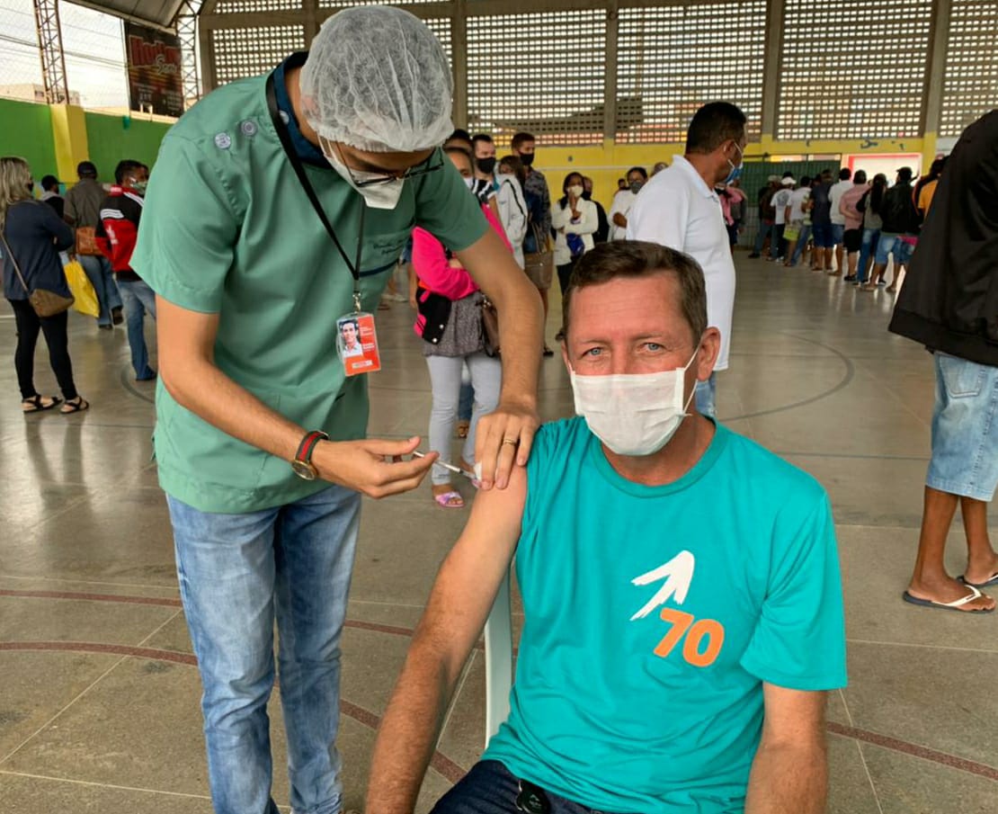 O vereador Duda Pedreiro recebeu a 1ª dose da vacina contra Covid, na manhã desta segunda-feira (5), data e quem a Prefeitura de Pocinhos abriu a imunização para a população em geral à partir de 44 anos de idade. Amanhã o vereador irá completar 45 anos e disse que a vacina foi um presente antecipado.